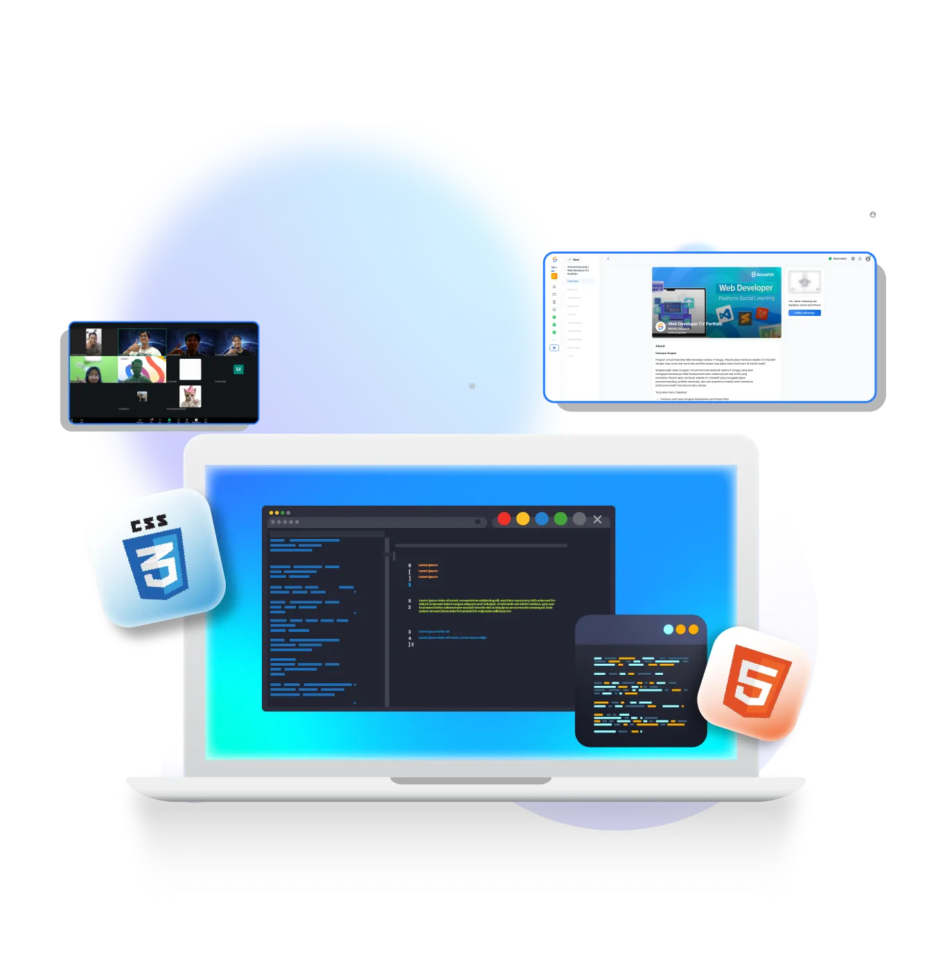 Virtual Internship di SocialVit adalah Komunitas belajar mensimulasikan kerja bareng. Berbeda dengan magang biasa di mana hasil kerjamu hanya dilihat satu perusahaan, di sini Real Project dan Portfolio yang kamu bangun akan dipromosikan langsung ke ratusan Hiring Partner Socialvit. Kamu tidak hanya membangun porto, tapi membangun exposure luas di mata banyak perekrut sekaligus melalui jalur Prioritas Hiring.
